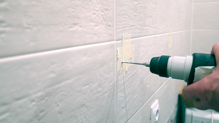 – Förr använde man tejp på glaserade kakelplattor för att borren inte skulle slinta. Men i dag är det mestadels plattor av granitkeramik och för att borra i det behöver du en speciell borr, till exempel Predator, som du fäster på en vinkelkap. Då är det som att skära i smör. Och du behöver inte tejpa.