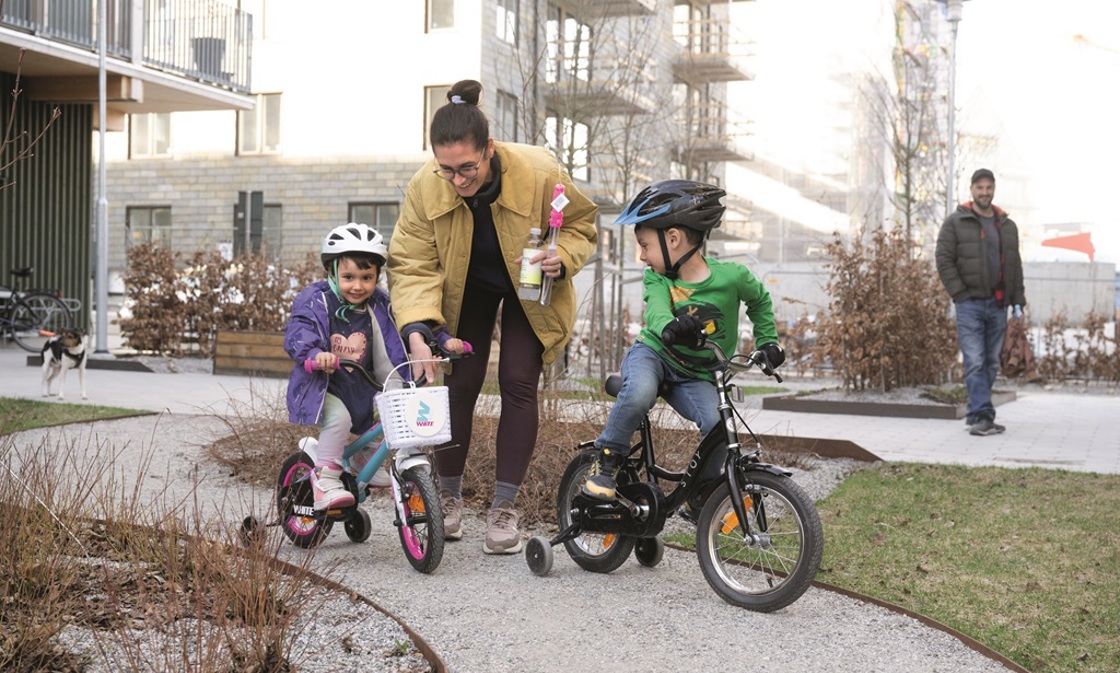– Vi uppskattar verkligen den stora balkongen, där tillbringar vi mycket tid under sommaren och det är kul med odlingarna. Även om inte barnen förstår hållbarhetsaspekten just nu, tror jag att hela det här boendet utgör ett bra föredöme för dem, tillägger han.