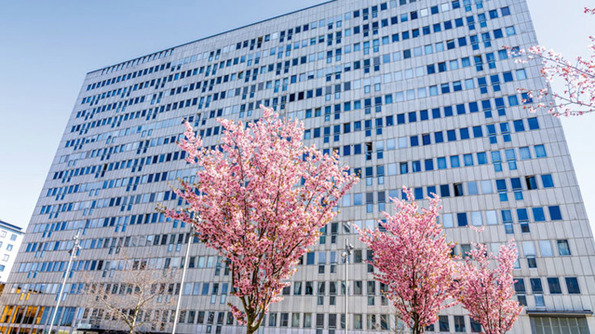 Likt en vägg höjer sig Brf Råck 16:s fasad i glas, emalj och betong upp mot himlen. En gång var huset en del av Vattenfalls huvudkontor och tillhörde norra Europas största kontorskomplex. En modernistisk dröm som nu är omtyckta bostadsrätter.