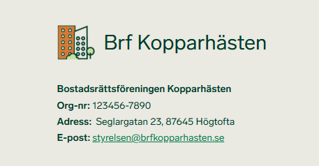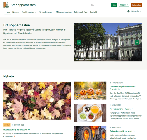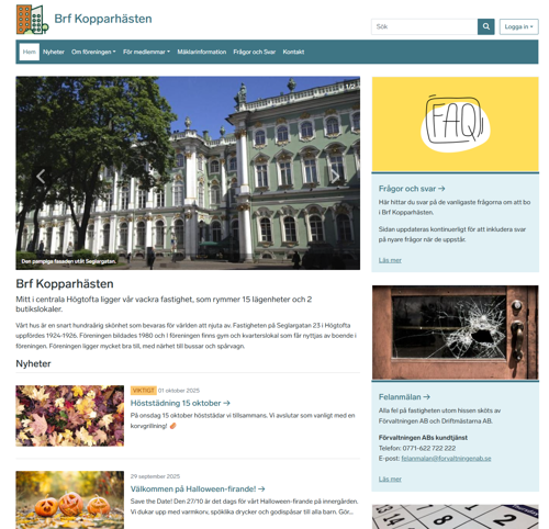 Besök gärna www.brfkopparhasten.se för att få inspiration gällande struktur och innehåll till din förenings webbplats.
