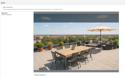 När du klickar på en miniatyr ser du bilden i förstoring. Välj om förstoringen ska beskäras som miniatyren eller visas i sin ursprungliga uppladdade form. - Kontaktformulär