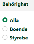- Styrelse – Endast användare med styrelsebehörighet kan se sidan. Styrelsemedlemmar har även åtkomst till innehåll för Boende.