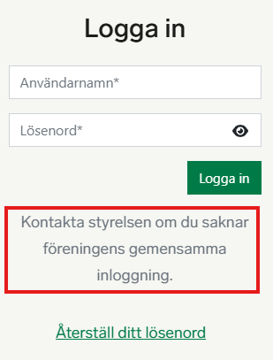 Webbplatsens inloggningsfunktion åtföljs av en beskrivande text. Beskrivningen kan variera beroende på hur föreningen väljer att hantera inloggningar. Vi tillhandahåller några standardtexter för detta ändamål, men det finns även möjlighet att författa en egen anpassad beskrivande text.