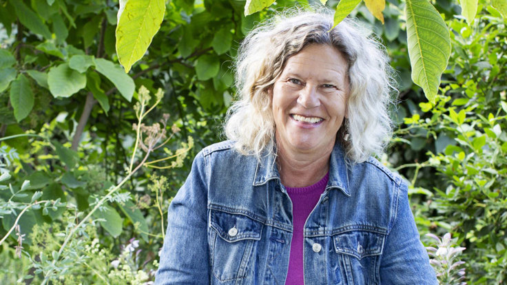 Hon har skrivit åtskilliga böcker i ämnet, trivs själv bäst med fingrarna i jorden och delar gärna med sig av sin gröna passion.
