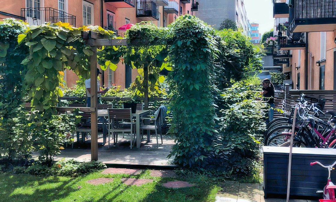 Svalkande skugga, blommande träd och lummig grönska? Så förvandlar ni innergården till en grönskande oas. – Det går att göra mycket för rätt liten peng, tipsar trädgårdsdesignern Niclas Tengwall.
