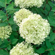 Vi vandrar runt mellan trädgårdens gröna rum, mellan skuggsökande funkiarabatter och soltörstande solhatt och stannar vid en vit vipphortensia. Blomställningarna lyser som vita lanternor i sensommaren.