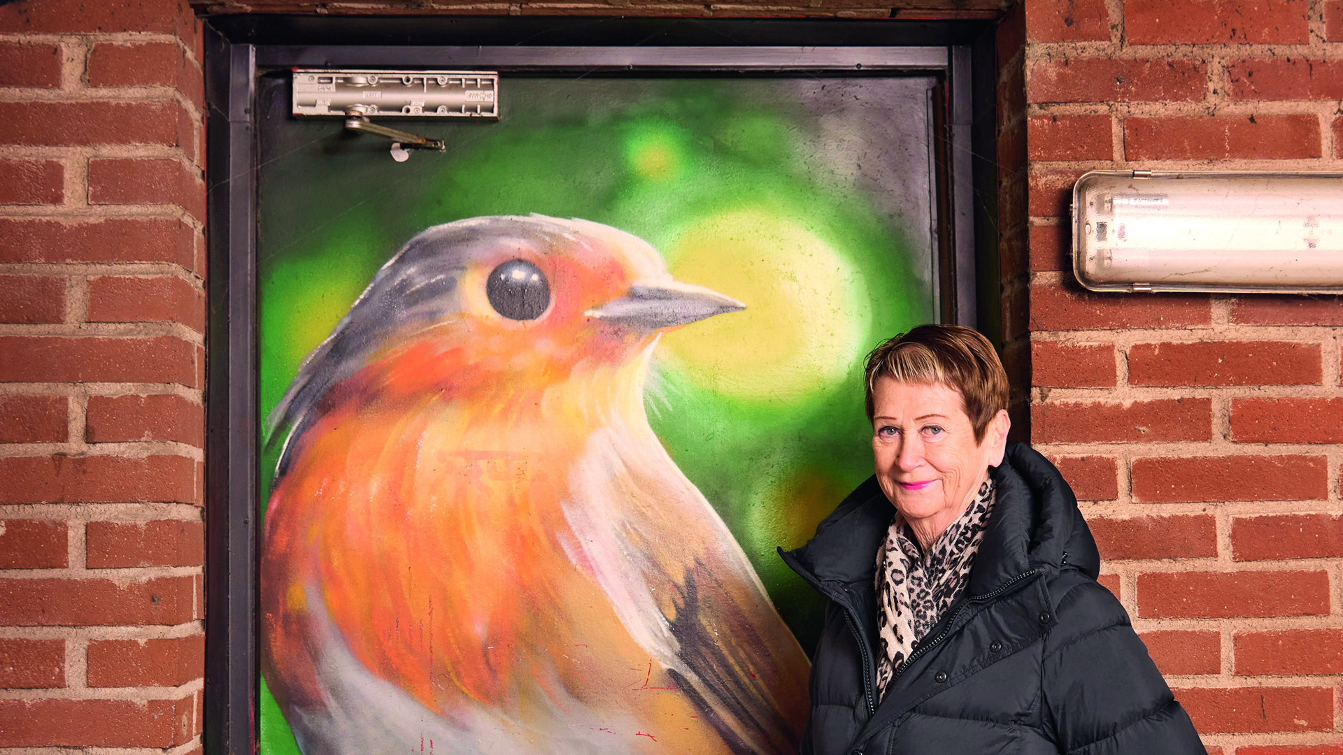 Så småningom kom fågeln på plats. Och under de tio år som har gått sedan dess har cykelrumsdörren i princip stått orörd. Endast vid ett tillfälle har den utsatts för klotter. Kate kontaktade Christofer som då restaurerade konstverket.