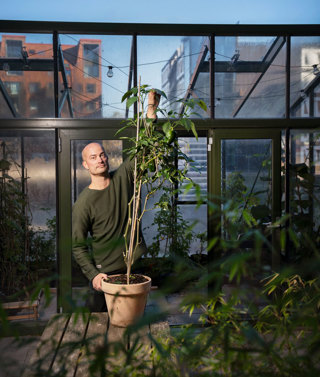 En mild höstförmiddag i växthuset doftar det av solmogna tomater, gurkor och persilja. Här har Reine Sterby precis bundit upp sommarens sista paprikaplantor. Runt omkring dem står kryddväxter, chili- och kiwiplantor på tillväxt.